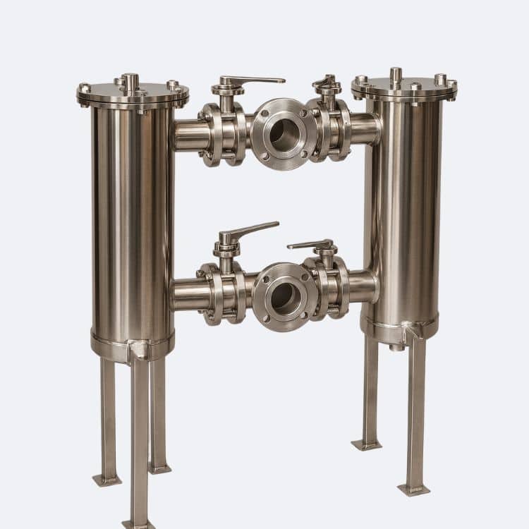 Aqua Fluid Technologies manufactures robust Duplex Filters designed for continuous, uninterrupted filtration of process fluids. These filters feature two basket strainers and two 3-way ball valves that allow seamless flow diversion during cleaning. While one strainer is in operation, the clogged screen of the other can be cleaned and reinstalled, ensuring zero downtime. Available in carbon steel, SS304, and SS316 construction, they withstand pressures up to 30 kg/cm² and temperatures up to 300°C. With customizable micron ratings (2µm–500µm) and media options, they provide reliable performance, leak-proof design, and extended filter life across critical industrial applications.